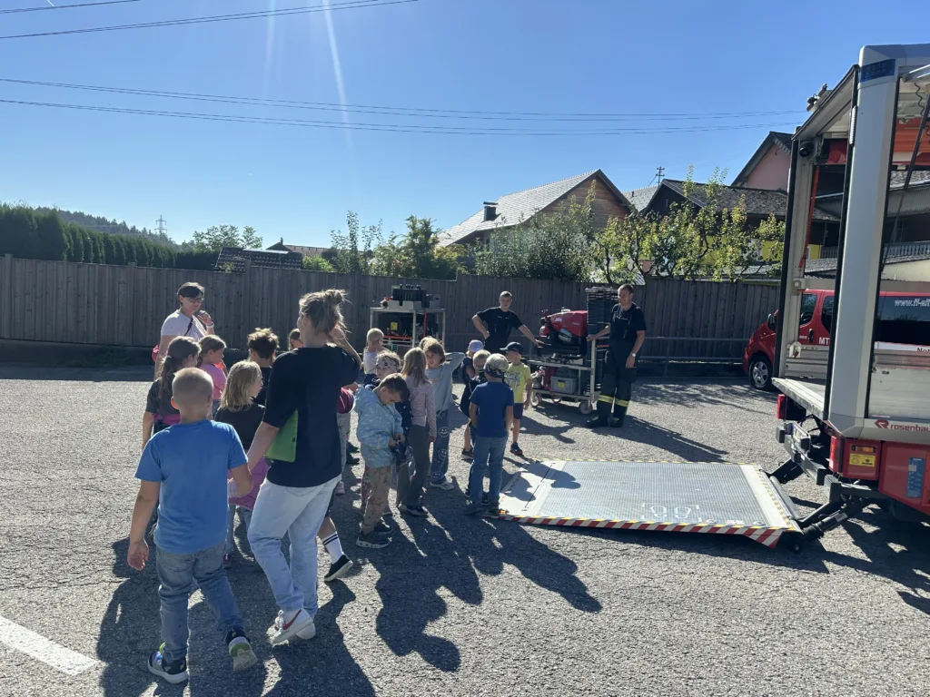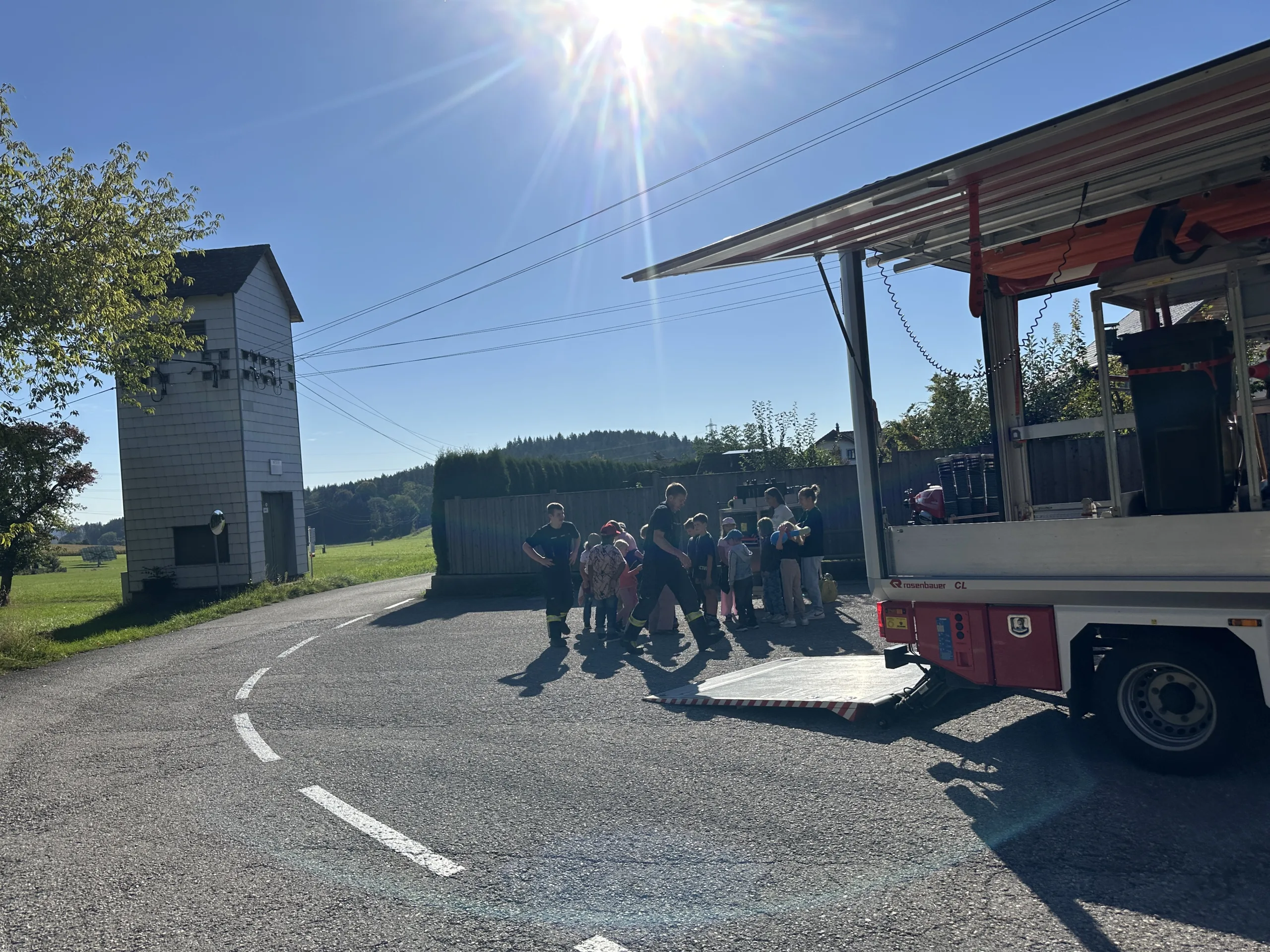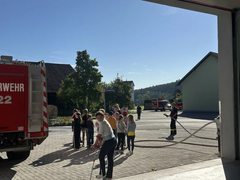Im Anschluss an die Übung wartete noch ein besonderes Highlight auf die jungen Teilnehmerinnen und Teilnehmer. Alle Kinder waren herzlich ins Feuerwehrhaus eingeladen! Dort hatten sie die Möglichkeit, unsere Einsatzfahrzeuge hautnah zu begutachten, auf den Mannschaftssitzen Platz zu nehmen und zahlreiche Fragen rund um die Feuerwehr und ihre Aufgaben zu stellen. Dies ist immer eine wunderbare Gelegenheit, den Kindern die Arbeit der Feuerwehr näherzubringen und vielleicht sogar den Grundstein für zukünftige Feuerwehrfrauen und -männer zu legen!
